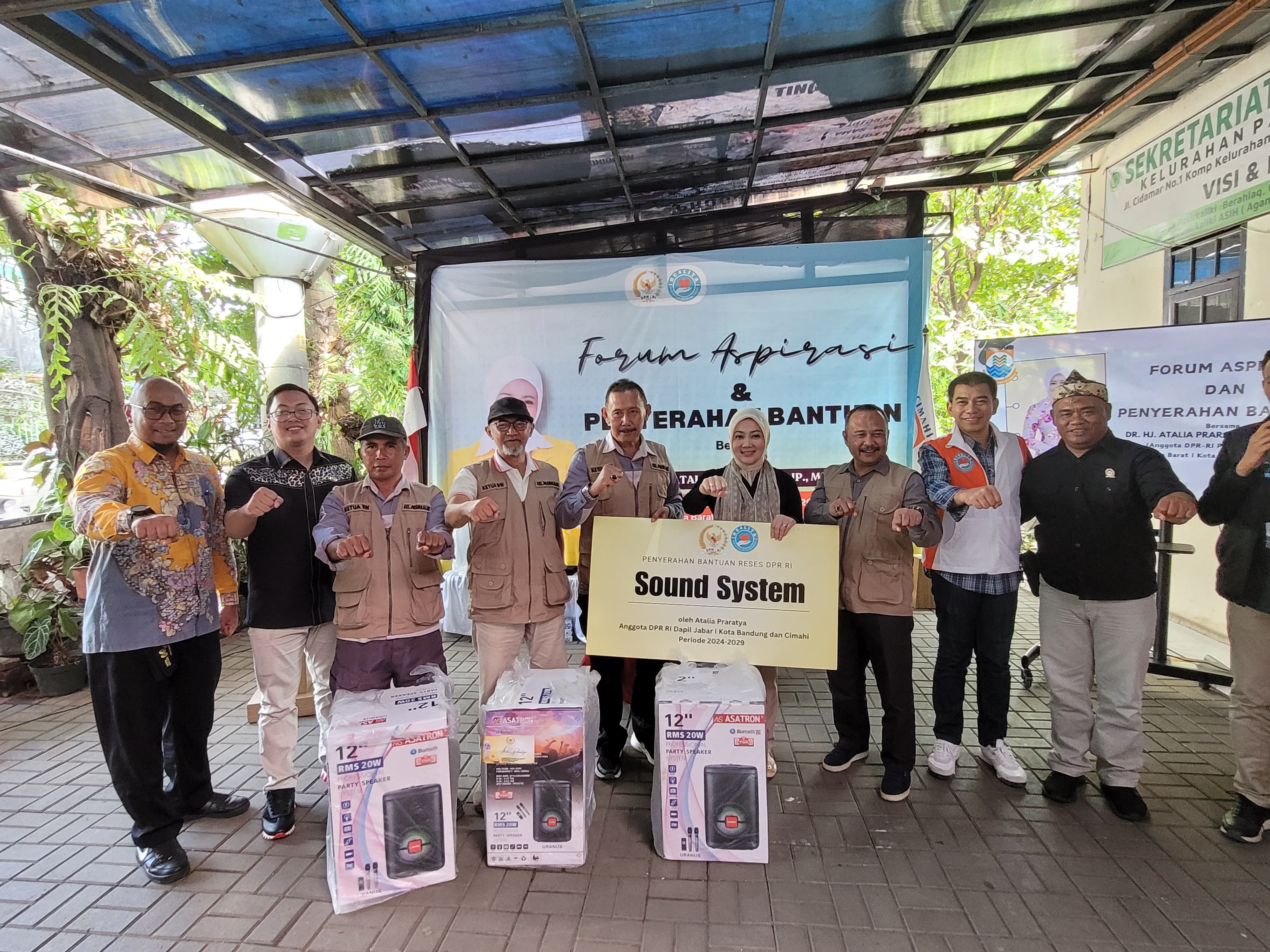 Dalam kesempatan tersebut, Ibu Atalia menyerahkan bantuan speaker untuk ketua RW guna mendukung kelancaran komunikasi dan koordinasi di lingkungan masyarakat. Bantuan ini disambut dengan antusias oleh para ketua RW, mengingat pentingnya sarana komunikasi dalam menyampaikan informasi kepada warga.